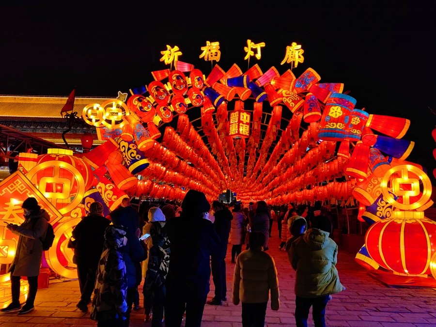 城墙灯会是西安最具代表性的春节民俗运动。春节时代,与家人登城墙赏花灯共度新春,在祈福灯廊内写下自己的新年愿望,感受最浓郁、最好玩、最有趣的中国年味。(大梵宇矿 张洋)